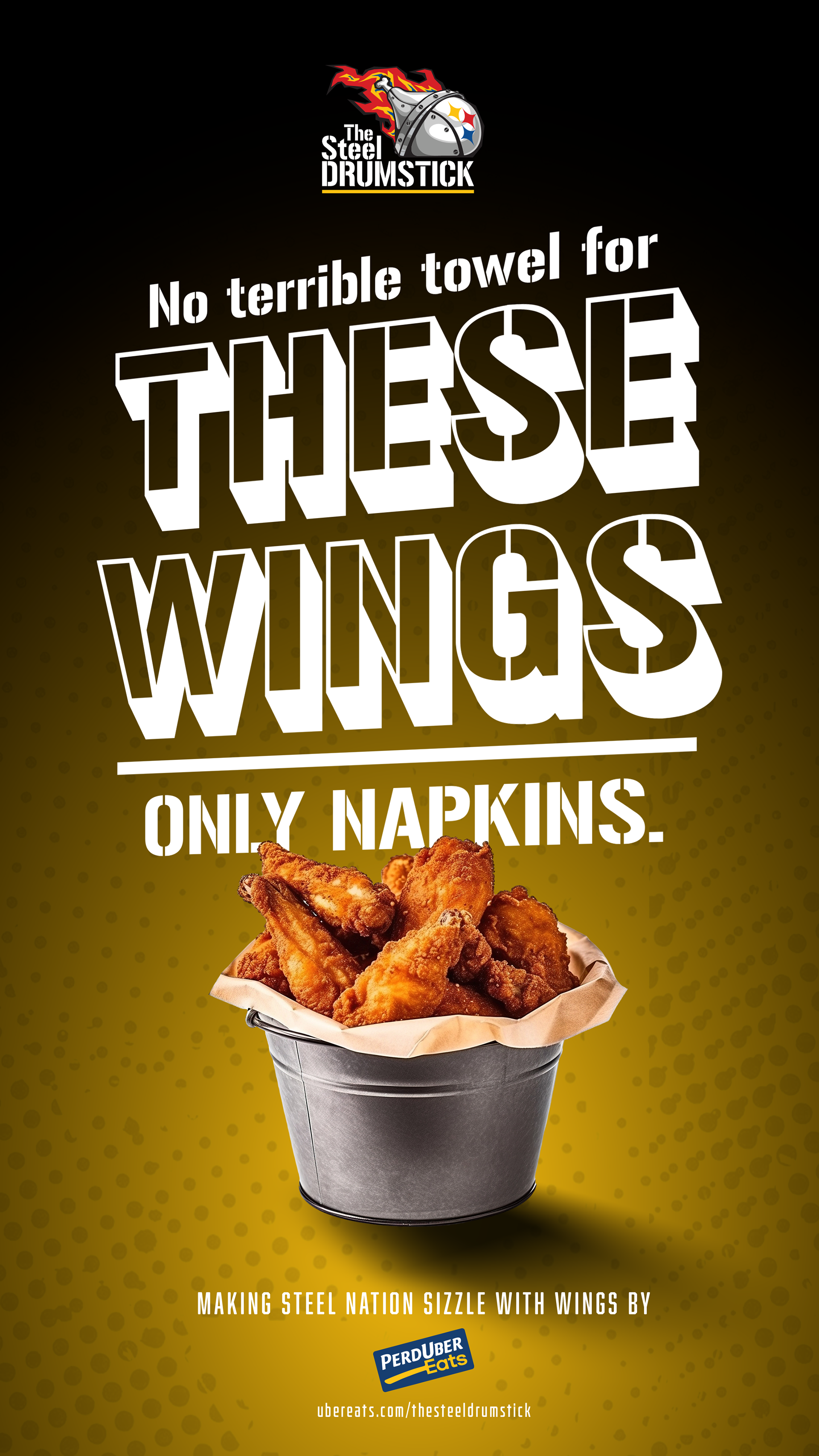 Idea: Teaming up with Uber Eats, we introduce NFL-inspired ghost kitchens, each team a unique restaurant. Fans order from what they think is an everyday wing spot, only to discover the twist: every order is made with Perdue chicken.